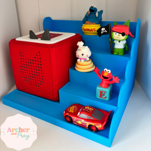 Each tower is 3D printed and can be customised to suit your space. Customers may add their own 35mm magnetic tape to the steps if they wish, to help keep Tonies securely in place.